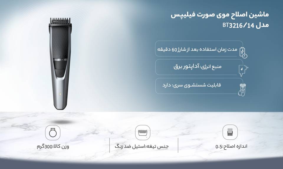 Philips BT3216 Trimmerلازم است محتوای ارسالی منطبق برعرف و شئونات جامعه و با بیانی رسمی و عاری از لحن تند، تمسخر و توهین باشد.